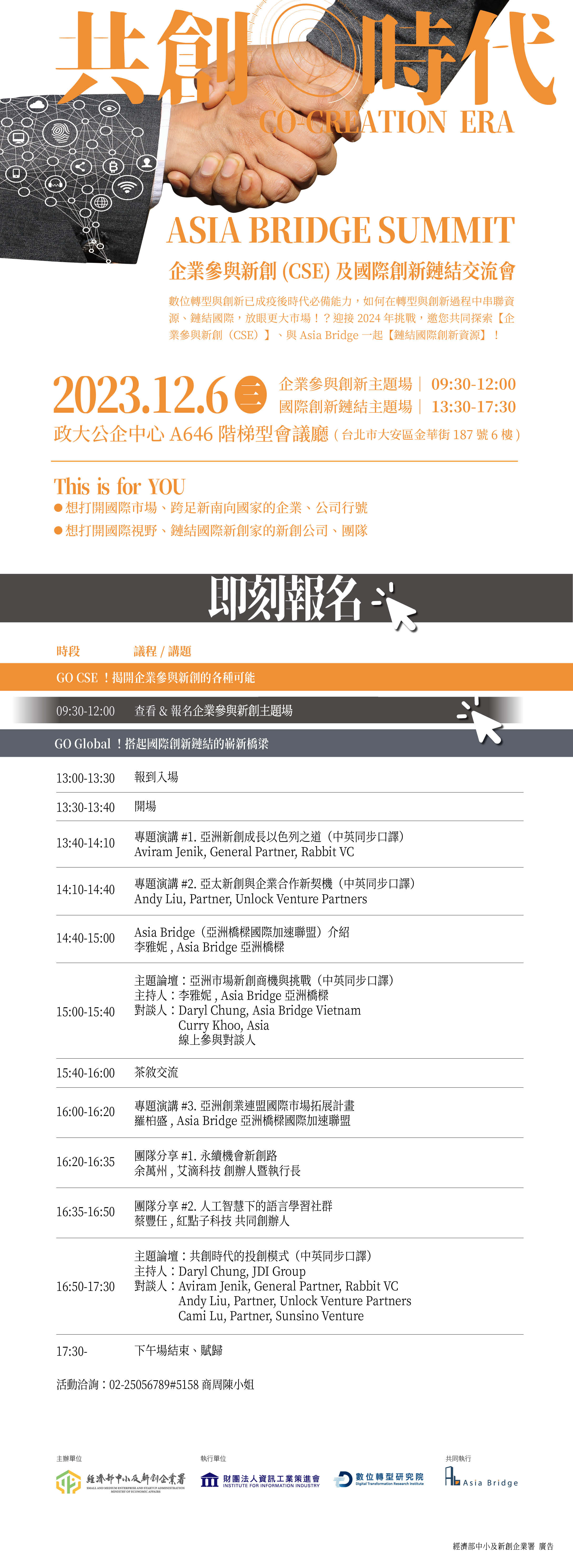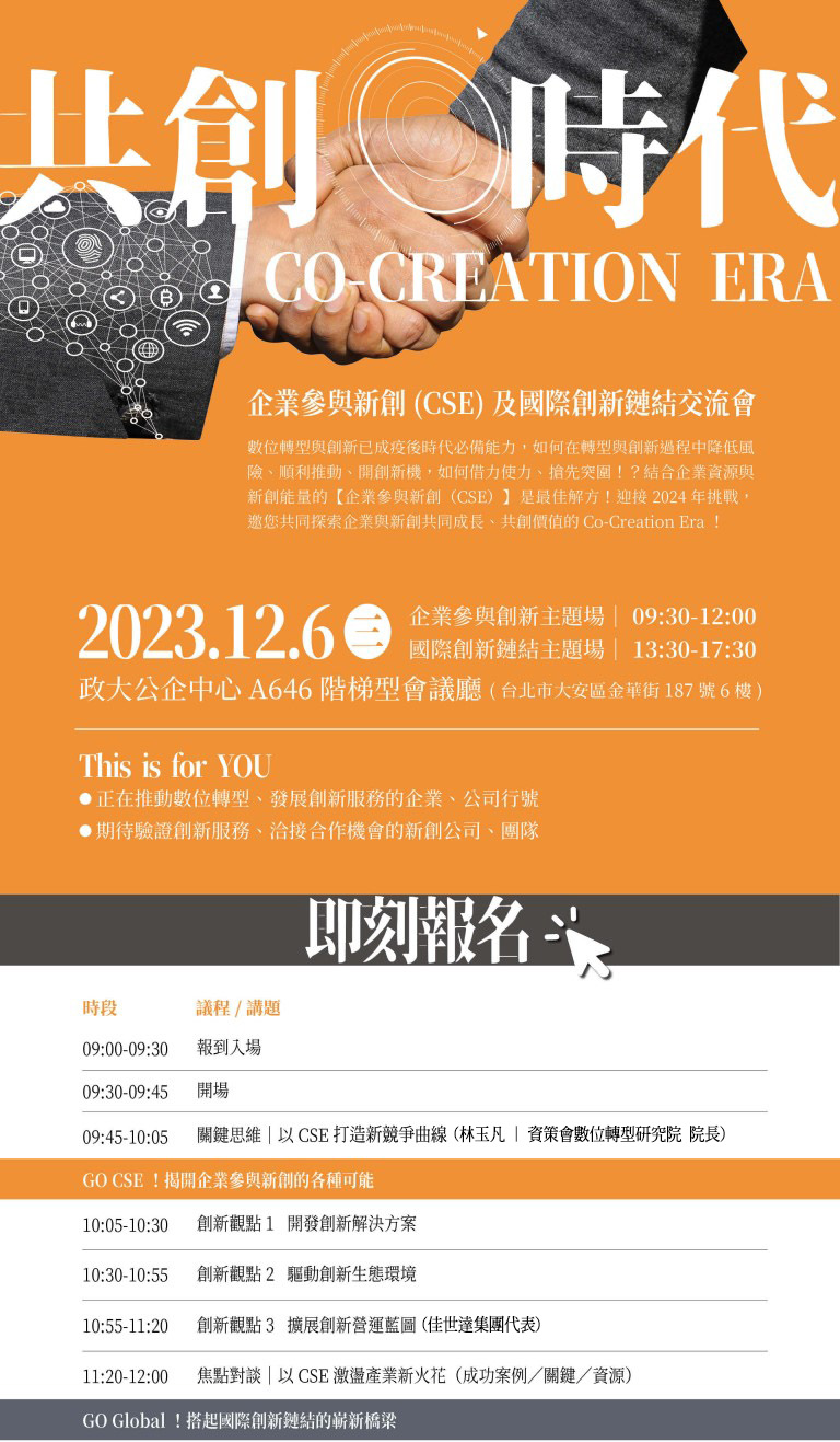 如何借力使力,搶先突圍,在轉型過程中結合企業資源與新創能量,激盪產業新火花,【共創時代Co-Creation Era】邀您共同開創新機!