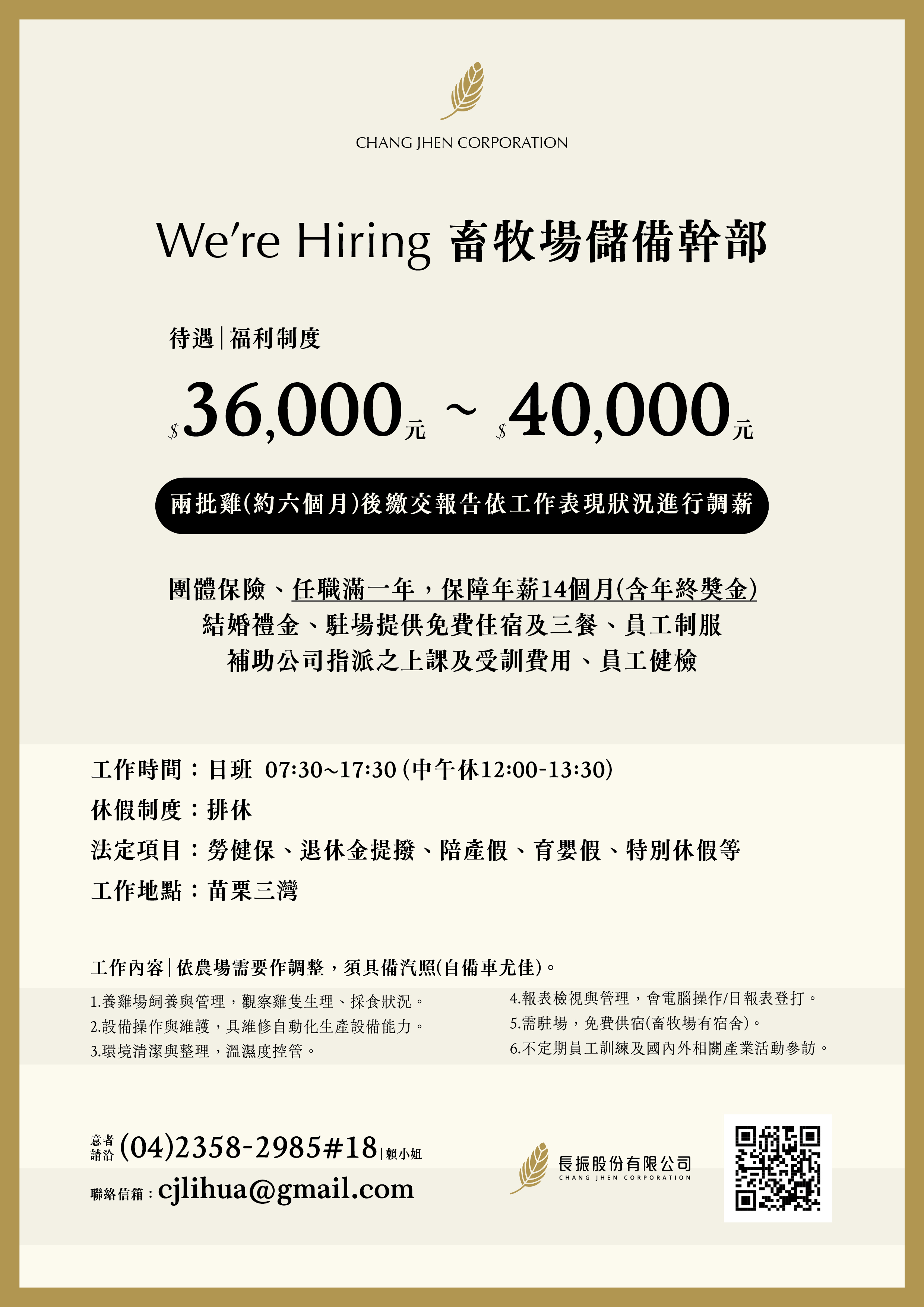長振股份有限公司招募農場儲備幹部職位徵才訊息