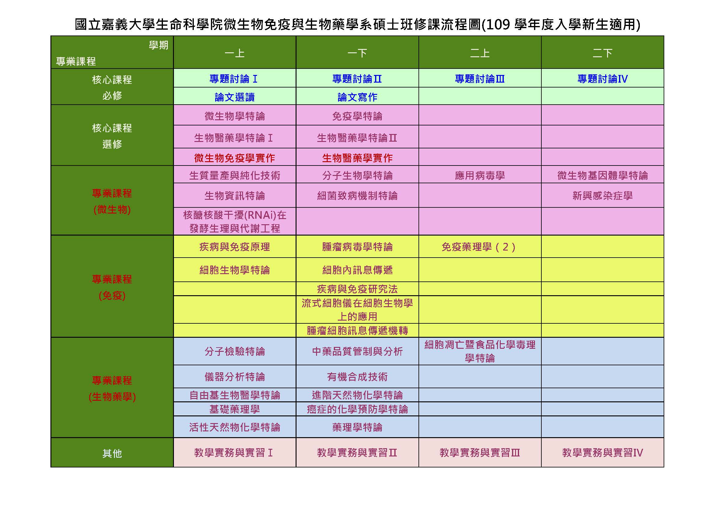 | 2024/06/18 | 109學年度入學新生適用 | 微生物免疫與生物藥學系 |