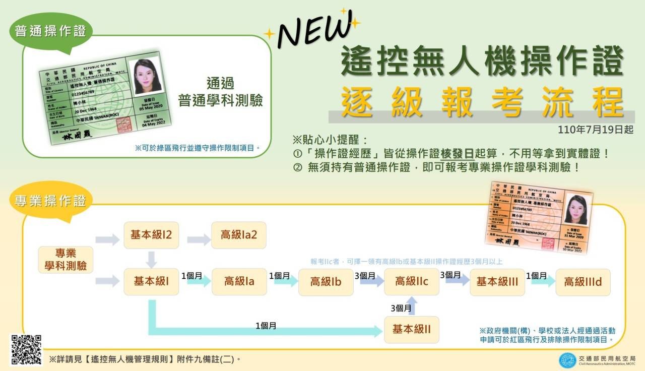 1.年滿18歲之國民。 2.訓練期限:原則3個月(每星期六及日整天免費練飛) |
