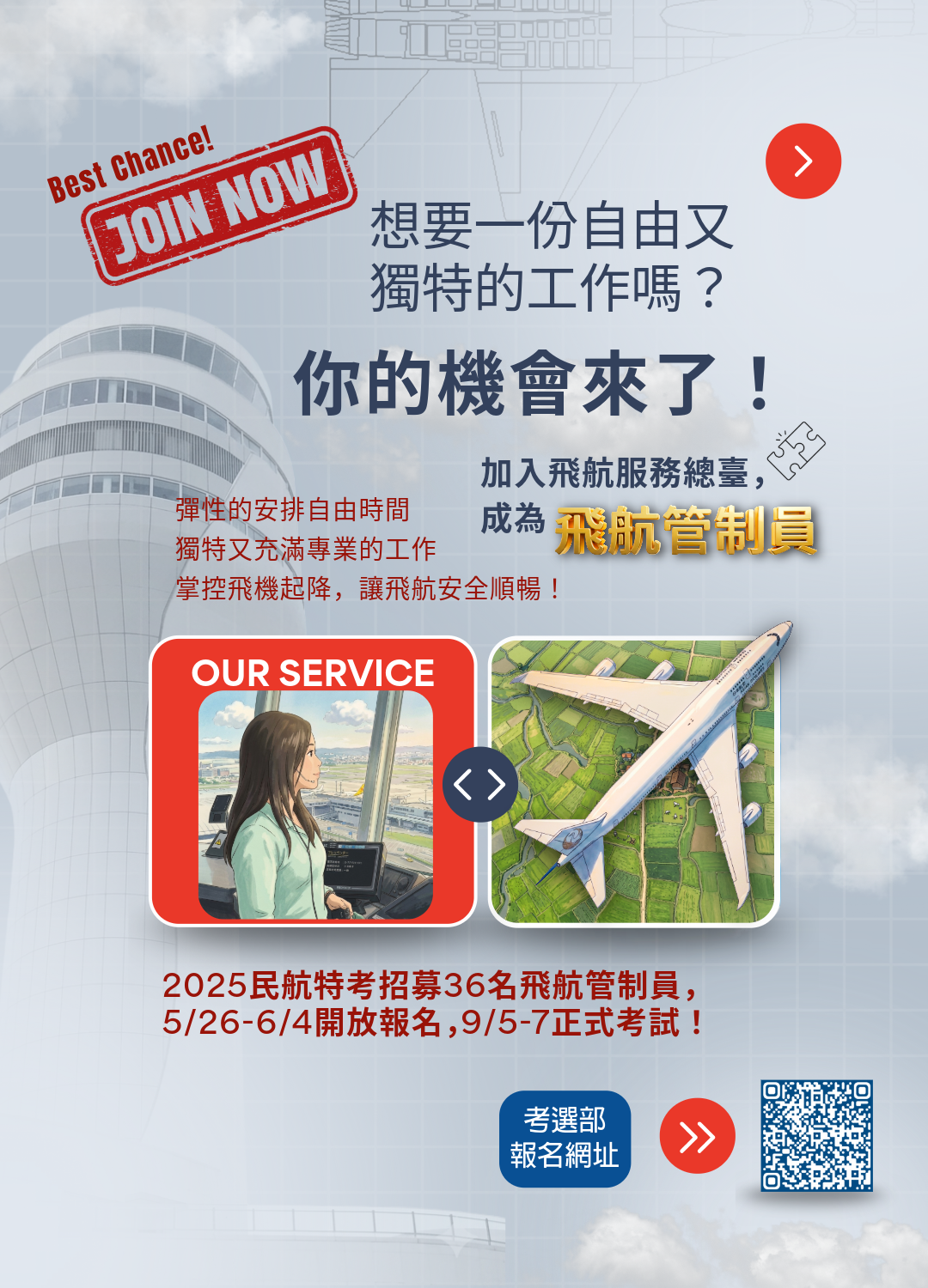 交通部民用航空局飛航服務總臺宣傳「115年公務人員特種考試民航人員考試」相關事宜