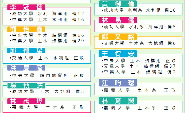 | 2018/07/14 | 107土木系研究所榜單(2) | 土木與水資源工程學系暨研究所 | |