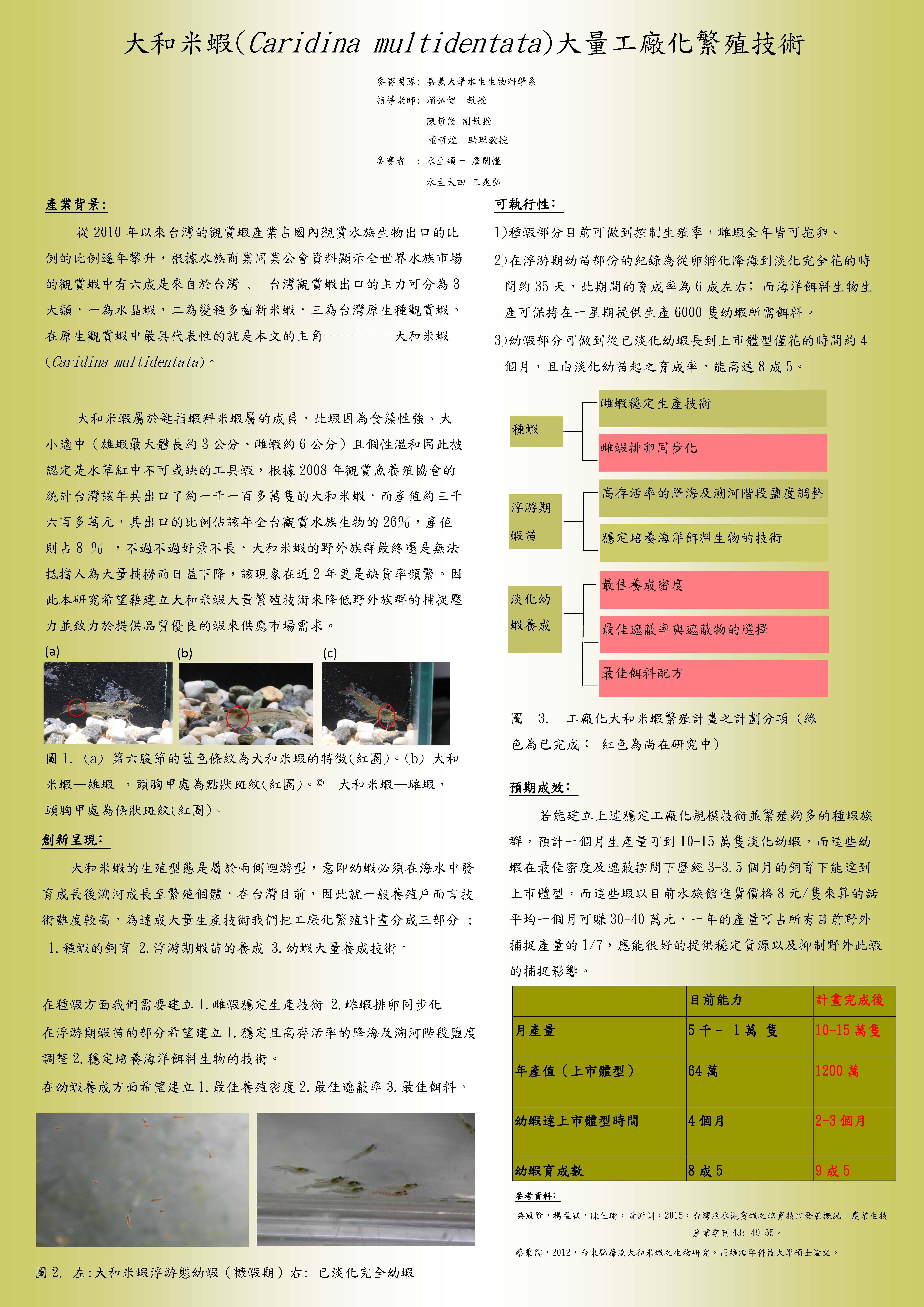 大和米蝦(Caridina multidentata)大量工廠化繁殖技術