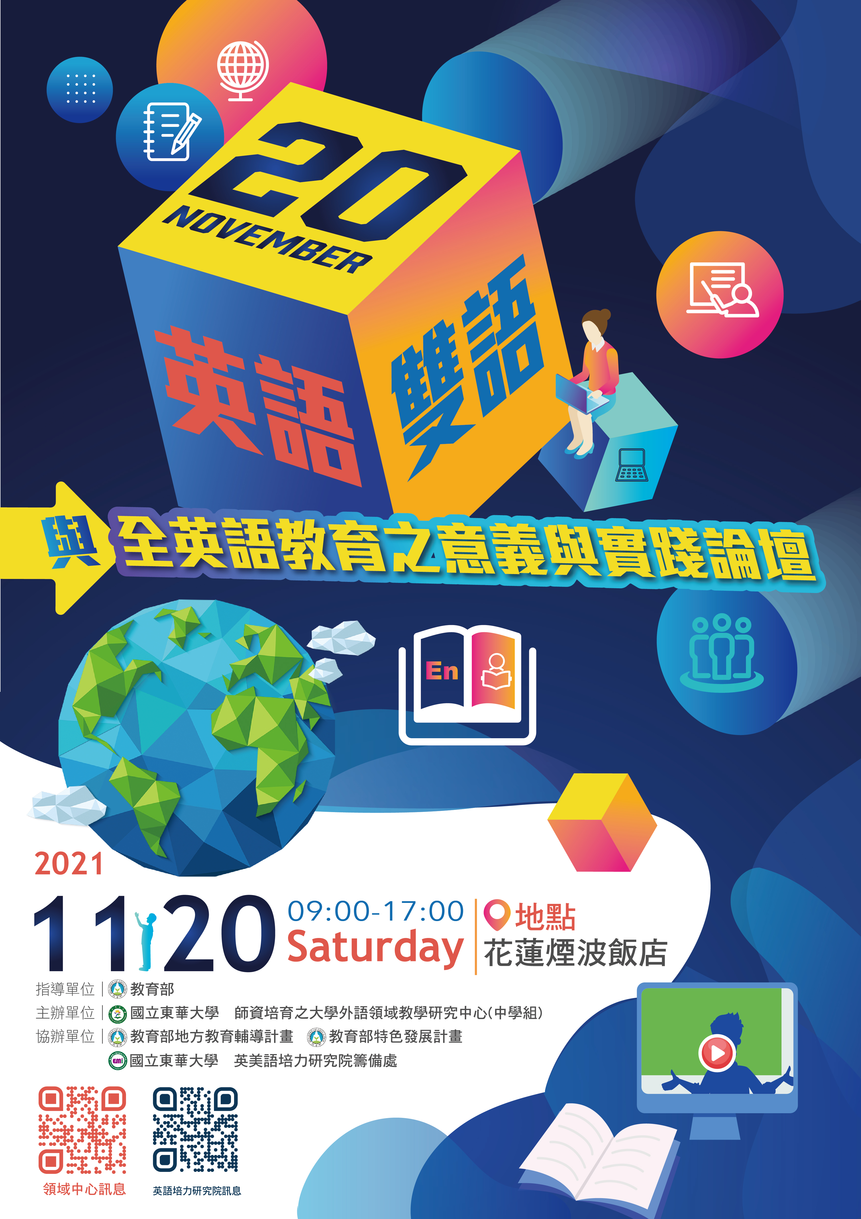 轉知~東華大學「2021英語、雙語與全英語教育之意義與實踐論壇」活動資訊