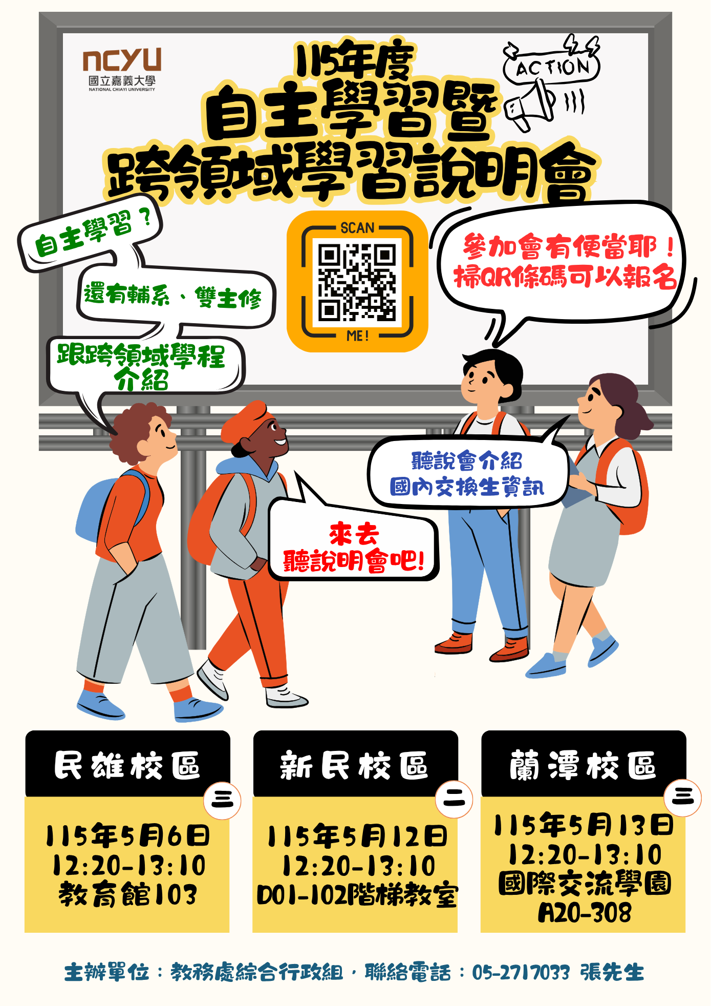 民雄校區:115年5月6日(星期三)中午,教育館103教室
