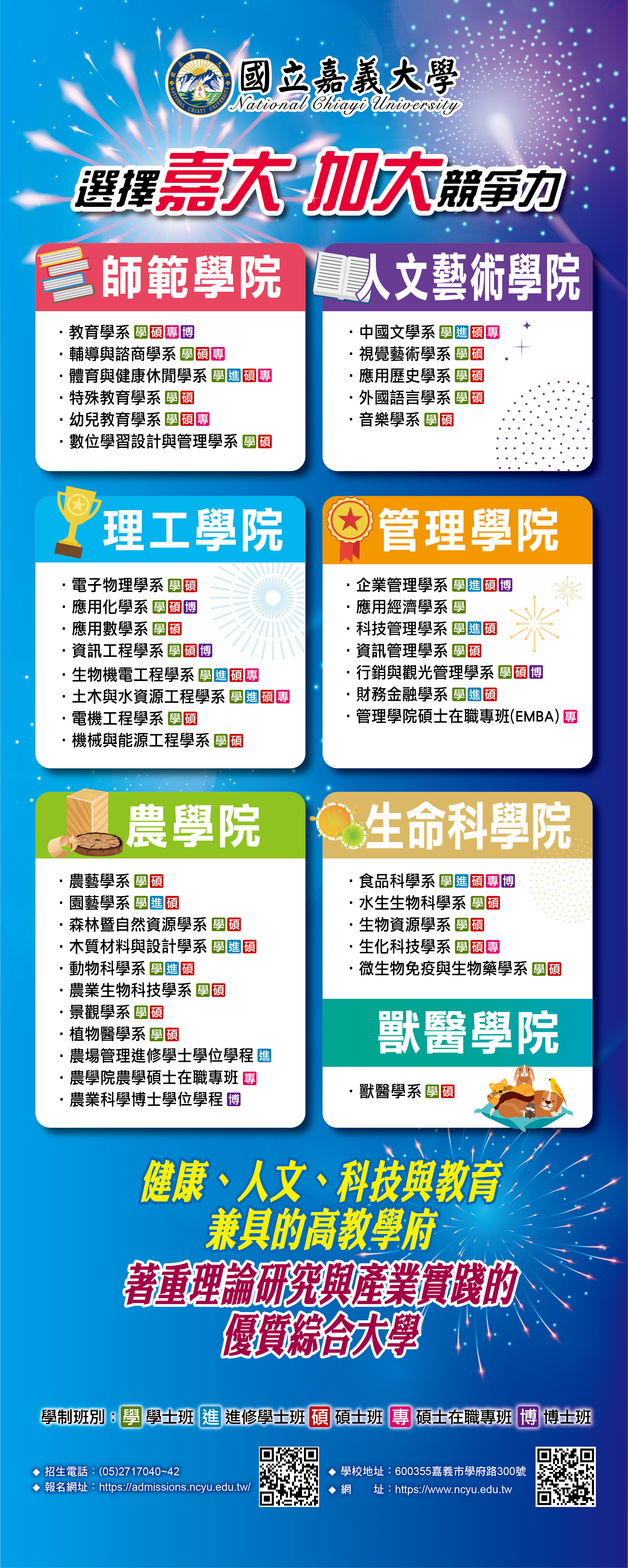 | 2024/12/02 | 國立嘉義大學招生簡介 | 招生與出版組 | |