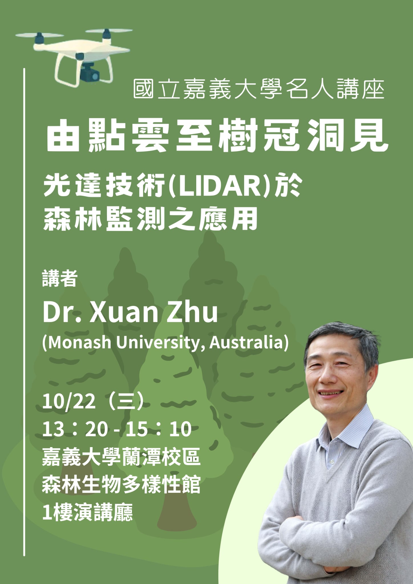 114.10.22(三)13:20-15:10,演講公告:由點雲至樹冠洞見:光達技術(LiDAR)於森林監測之應用