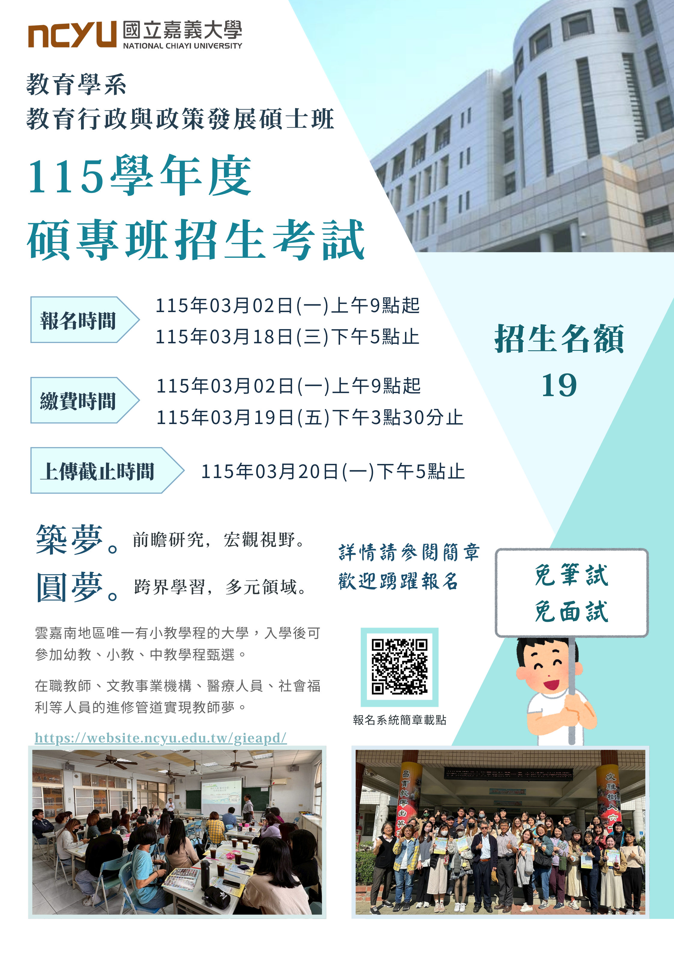 115學年度碩士在職專班招生簡章出爐了~