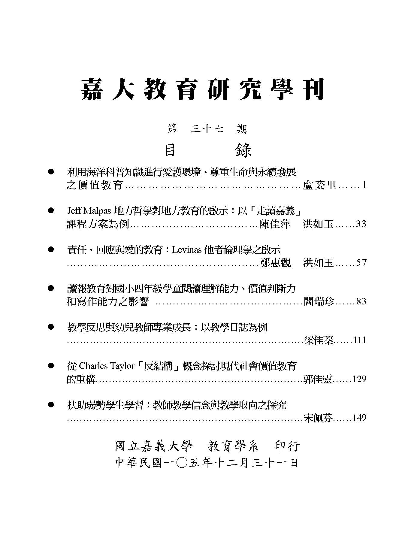 嘉大教育研究學刊各期內容