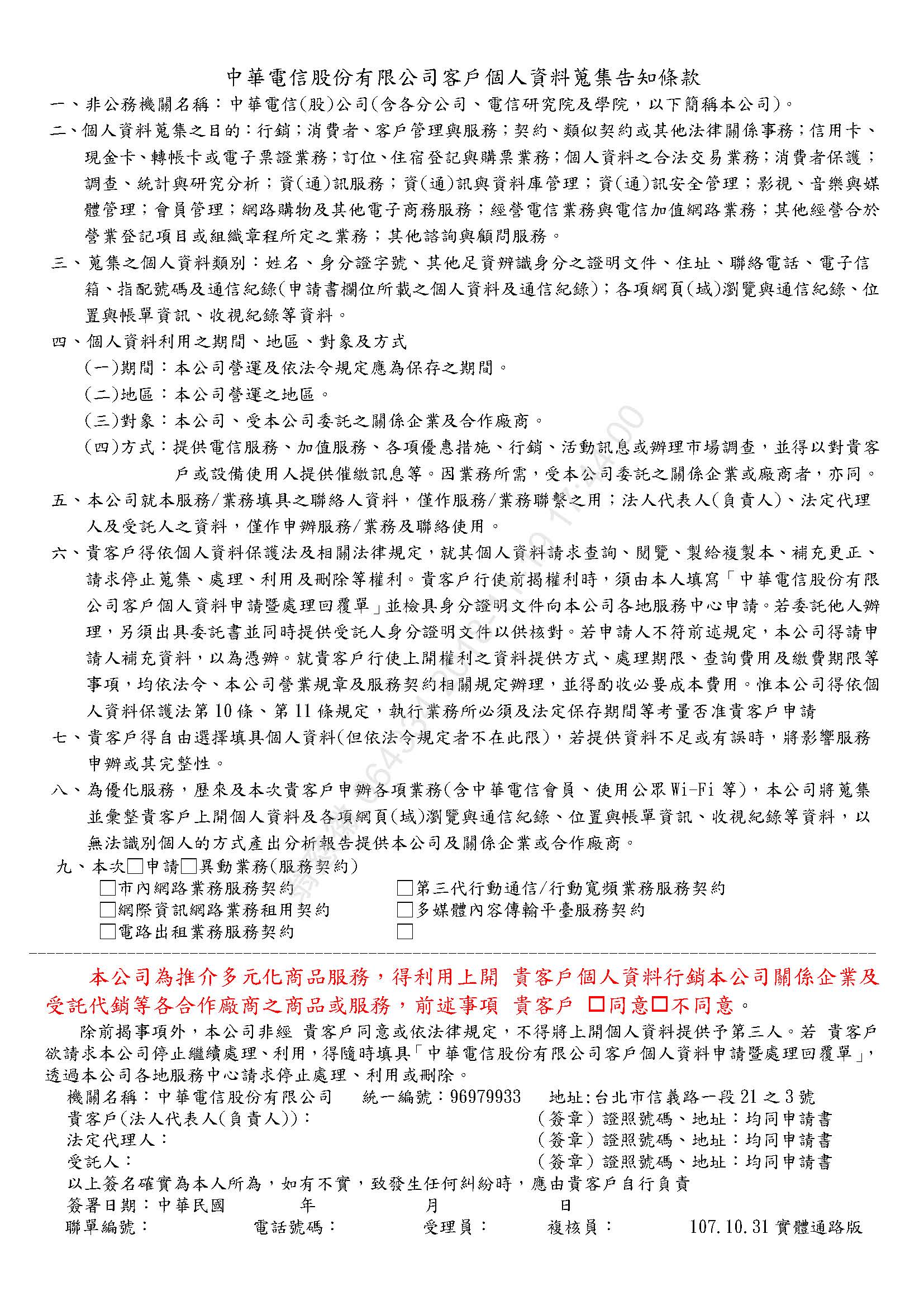 D.中華電信股份有限公司客戶個人資料蒐集告知條款