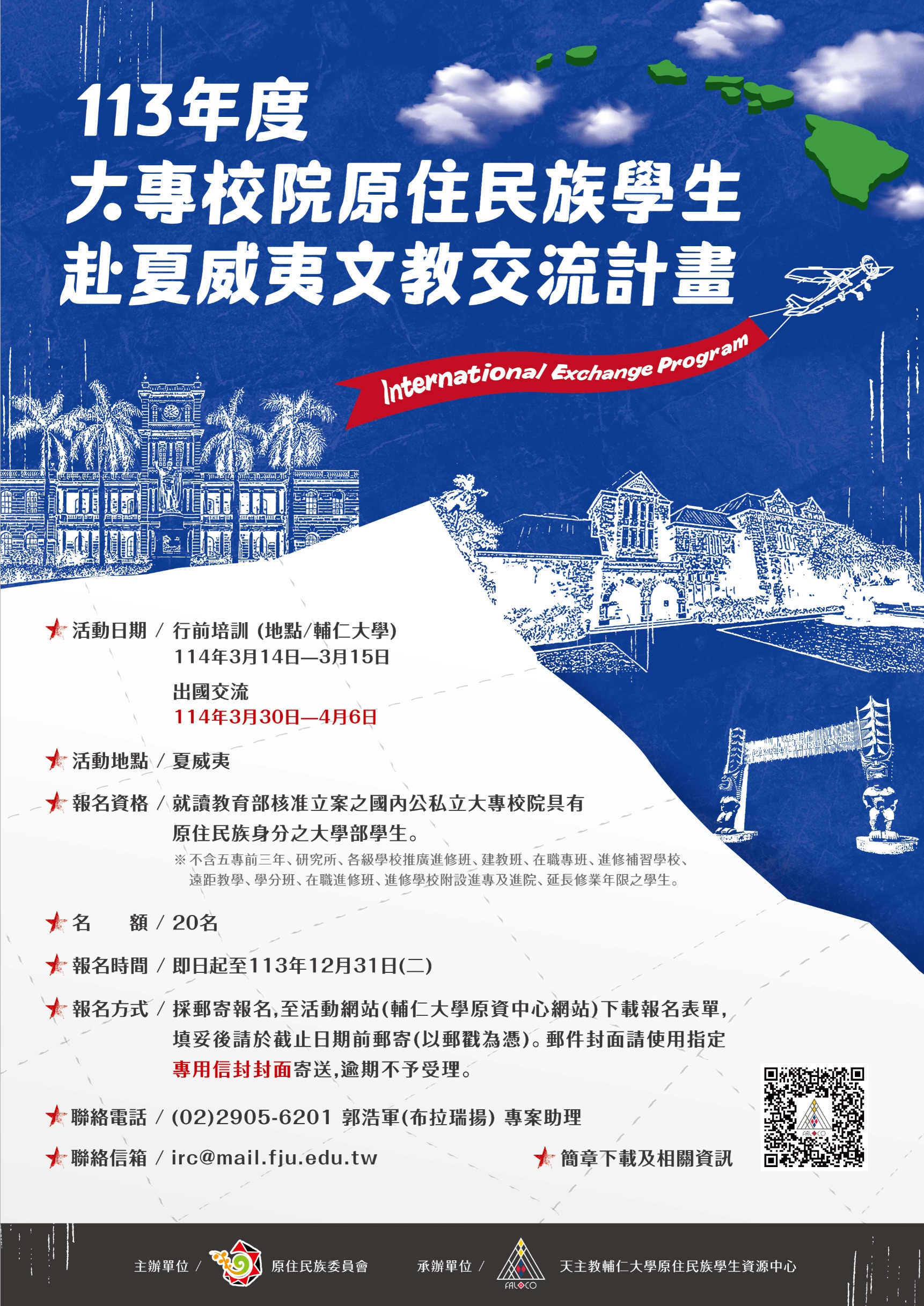 113年度大專校院原住民族學生赴夏威夷文教交流計畫
