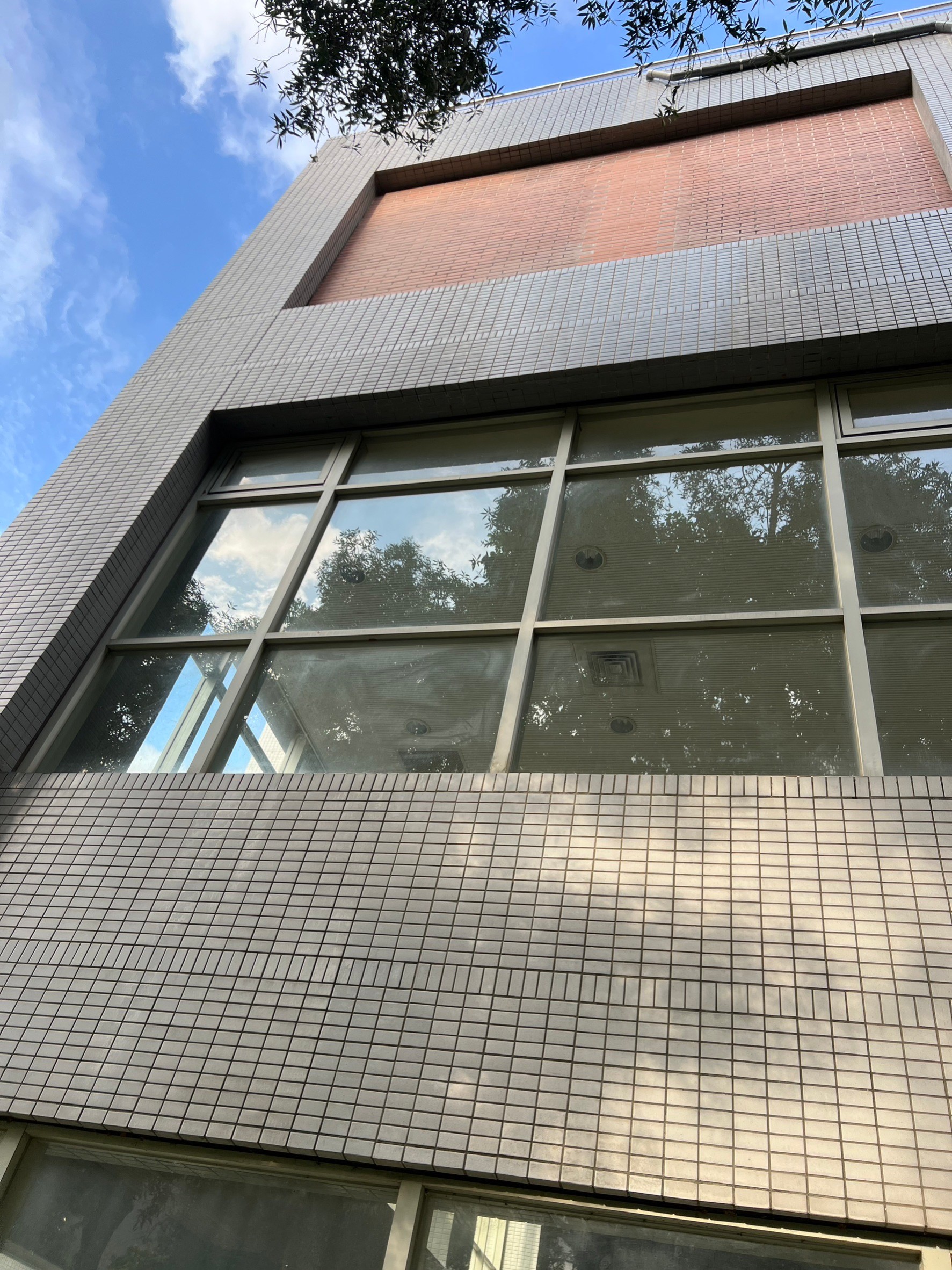 日完成大學館外牆部分牆面髒污清理及排水改善。