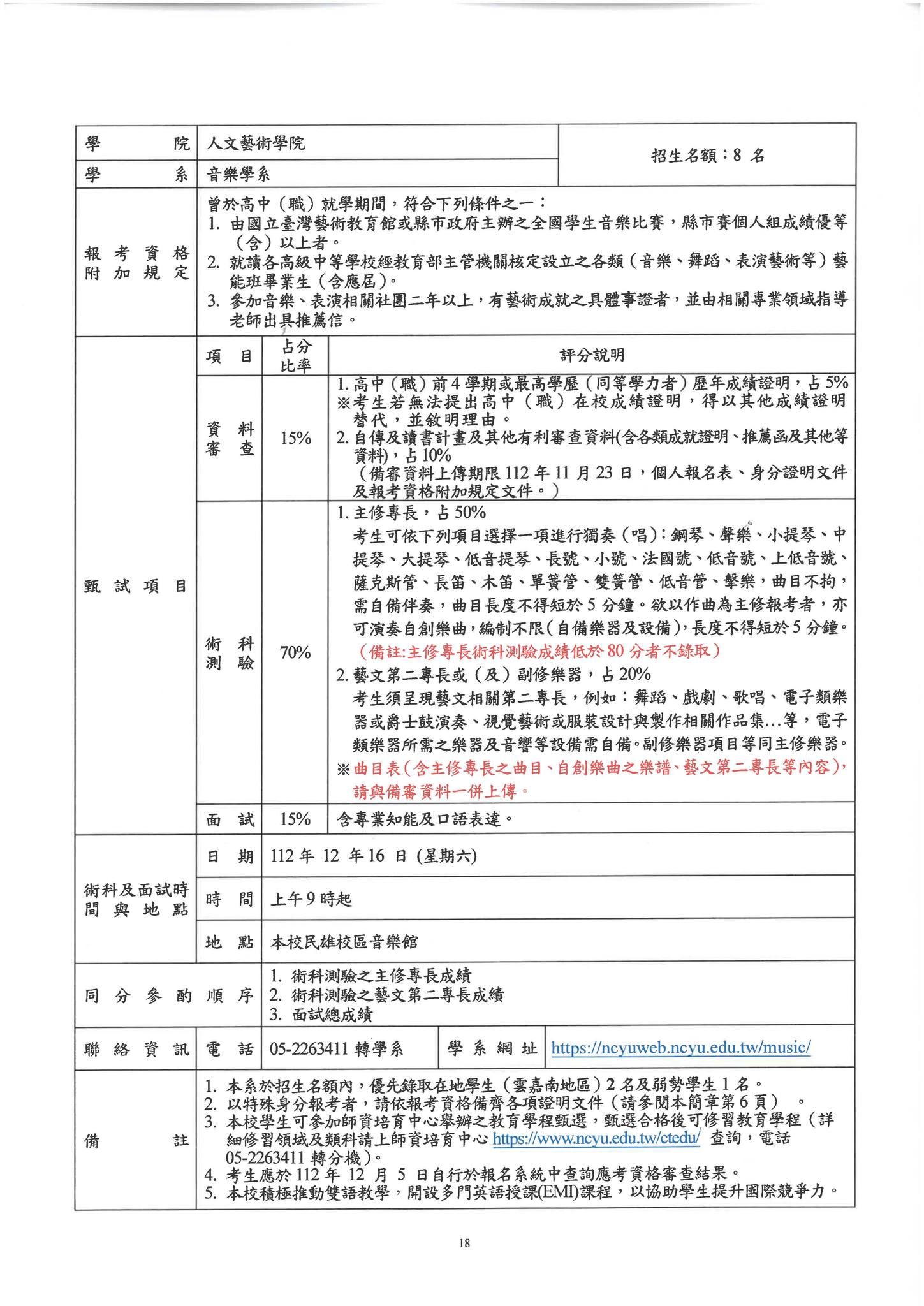 112學年度特殊選才招生考試曲目表