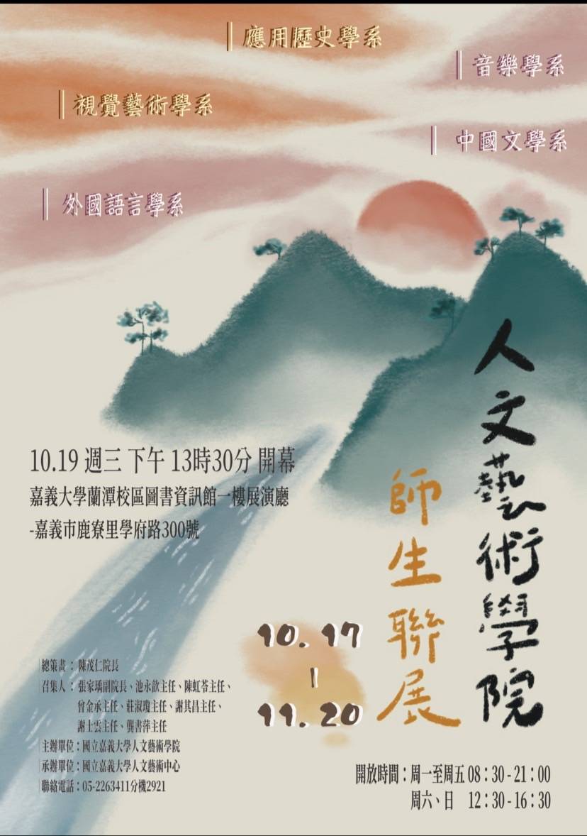 College of Humanities and Arts Faculty and Student Joint Exhibition October 17 to November 20, 2022 Lantan Campus Library, First Floor